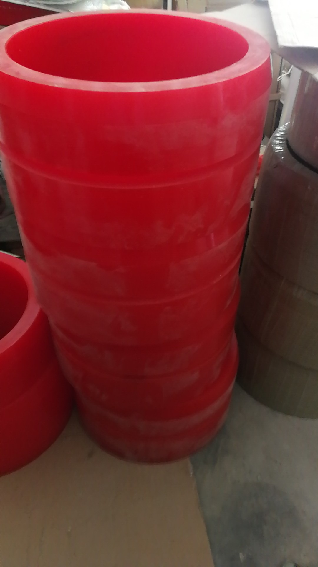 開卷機不同鋼卷內(nèi)徑之間工作時是如何通過開卷機膠套變換的? 鋼卷出廠時型號大約有610、700、730幾種,但通常鋼材加工中心的設(shè)備不一定每一次都對應(yīng)的如此準(zhǔn)確,那么,在擁有一套設(shè)備的情況下,如何加工多種型號的鋼卷呢?這里就因此而生了開卷機膠套。 開卷機膠套不僅對鋼卷內(nèi)徑起到緩沖作用,防止內(nèi)徑板材的硌傷,還可以通過不同的厚度尺寸來調(diào)節(jié)應(yīng)對加工板材的型號,比如開610的鋼卷,選用508/610的開卷機膠套,而開700的鋼卷,則是內(nèi)徑不變,增加厚度來對應(yīng)就可以了,開卷機膠套咨詢報價電話1588875651、13969066363(微信同號)
